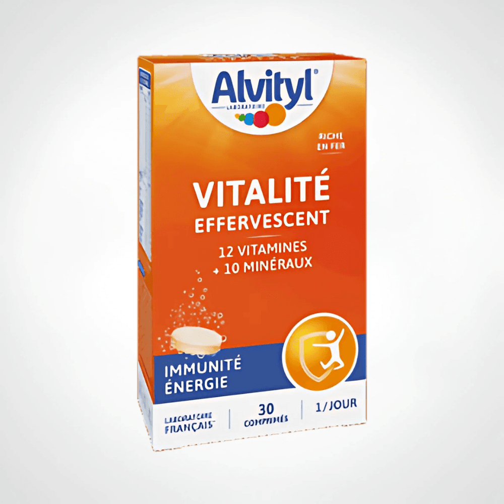 Alvityl Multivitamines Effervescent apporte 12 vitamines essentielles pour énergie, immunité et tonus, disponible en Tunisie au meilleur prix.