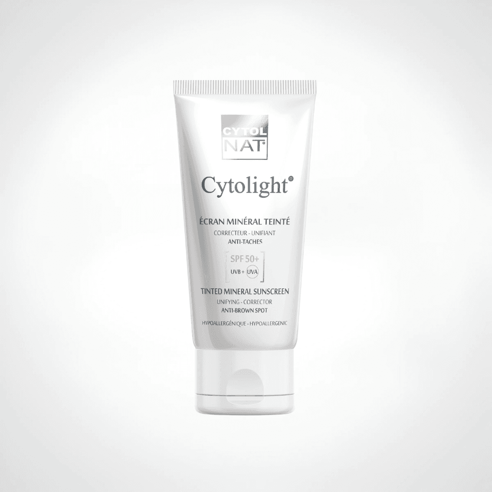 Pour les peaux hyperpigmentées, l’étape la plus cruciale du traitement est la protection solaire, qui doit être irréprochable pour éviter la réactivation des taches (mélasma, lentigos). Le CYTOLNAT CYTOLIGHT MINERAL TEINTE 50+ ANTI-TACHES 50ML est la solution idéale qui réunit le soin dépigmentant et le bouclier solaire. Ce produit est un achat stratégique car il utilise une formulation 100% minérale (physique), ce qui garantit une très haute tolérance même sur les peaux les plus sensibles ou fragilisées par les traitements anti-taches.
