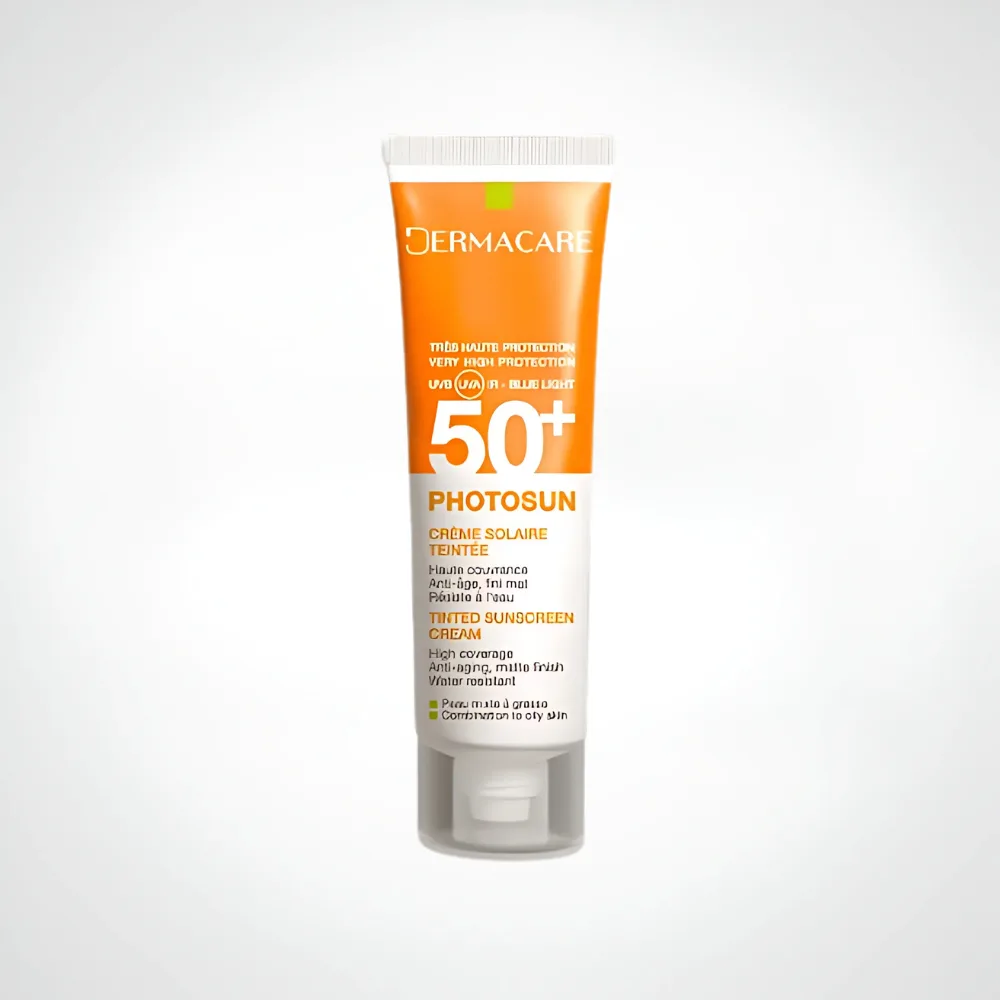 ☀️ DERMACARE PHOTOSUN 01 Fluide Matifiant Teinté Beige Éclat SPF 50+ : Protection solaire et teint unifié pour peaux grasses