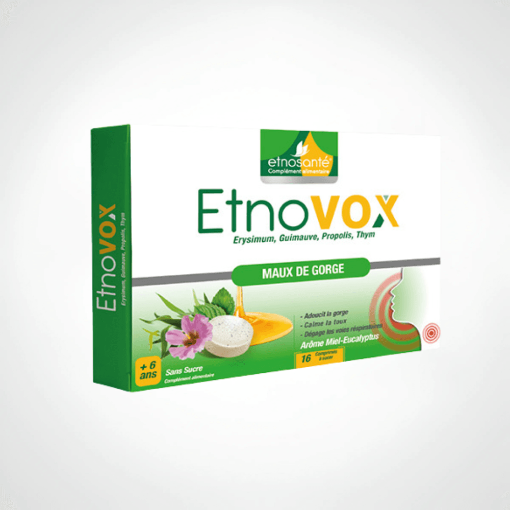 L’irritation de la gorge est souvent le premier symptôme d’un coup de froid ou d’une agression environnementale. Pour y remédier, rien n’est plus efficace qu’une pastille à sucer qui hydrate et adoucit localement. C’est pourquoi les Laboratoires Etnosanté ont conçu les pastilles ETNOSANTE ETNOVOX MAUX DE GORGE MIEL CITRON 16 COMPRIMES. En effet, en stimulant la production de salive, elles apportent une hydratation naturelle et continue aux muqueuses. Cette action est renforcée par les propriétés traditionnellement reconnues du Miel (émollient) et du Citron (vivifiant). Grâce à son goût agréable et réconfortant, ce produit est facile à prendre et procure un soulagement rapide et durable, aidant à prévenir l’aggravation des symptômes.