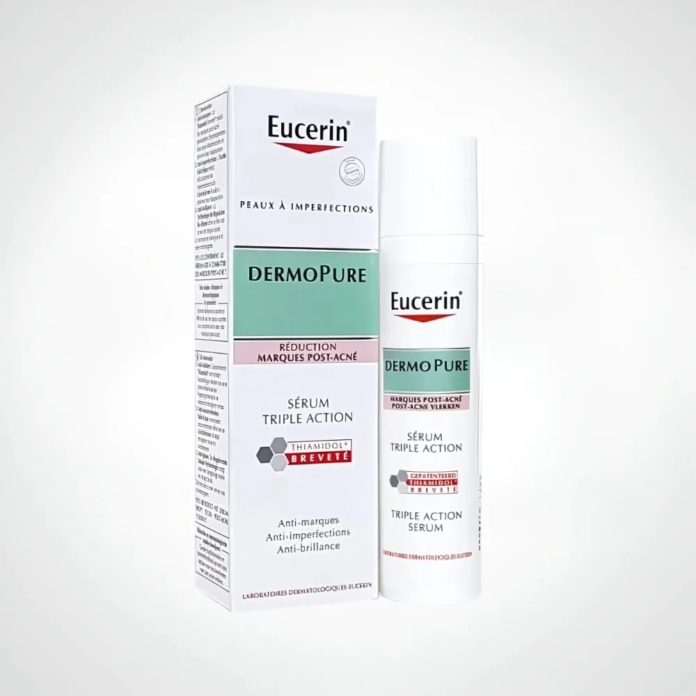 En Tunisie, où le climat chaud et la pollution stimulent l’excès de sébum sur peaux grasses, des imperfections et une brillance persistante s’installent progressivement, affectant votre texture et votre éclat sans soin cosmétique triple action précis. Imaginez ces boutons s’aggraver avec l’humidité, impactant votre routine visage. EUCERIN DERMOPURE Serum TRIPLE ACTION 40ML apporte une réponse bienveillante : un sérum qui aide à purifier, matifier et anti-bactérien, pour une peau revitalisée et équilibrée.