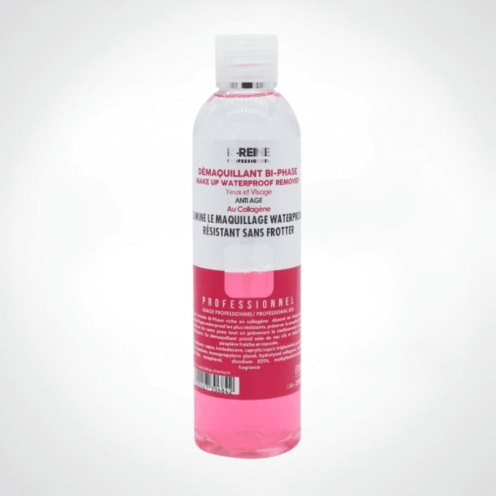 Le Démaquillant Biphase Anti-Âge Waterproof K-REINE 250ml offre un démaquillage parfait et un soin anti-âge intégré. Sa formule biphasée exclusive dissout instantanément tout type de maquillage, même le plus tenace et waterproof, sans laisser de film gras. Enrichi en puissants actifs anti-âge, il nettoie en douceur les yeux et les lèvres tout en aidant à prévenir les signes du vieillissement cutané. Votre peau est parfaitement nette, incroyablement douce et visiblement rajeunie.