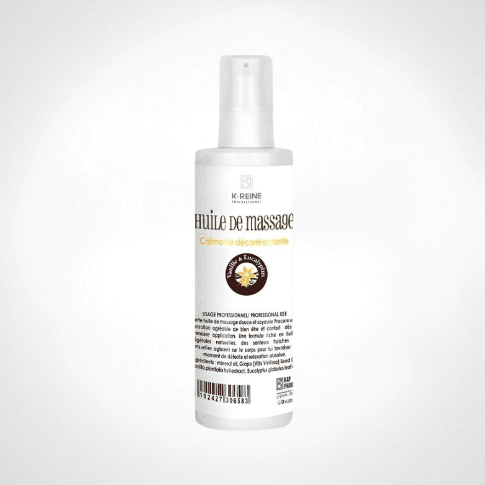 Succombez à l’expérience K-REINE. Cette Huile de Massage Eucalyptus Vanille 200ml offre une fusion envoûtante : la vivacité rafraîchissante de l’eucalyptus rencontre la douceur apaisante de la vanille. Idéale pour détendre les muscles, nourrir la peau et créer une atmosphère de sérénité absolue. Votre rituel bien-être essentiel.