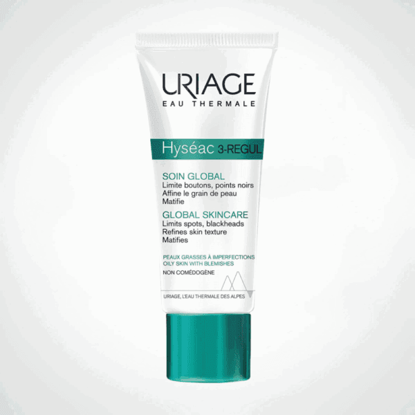 URIAGE HYSEAC 3 REGUL+ Soin GLOBALE 40ML est un soin dermatologique complet destiné aux peaux mixtes à grasses sujettes aux imperfections. Sa formule innovante agit simultanément sur les boutons, points noirs, excès de sébum et pores dilatés, pour retrouver une peau plus nette et équilibrée.
