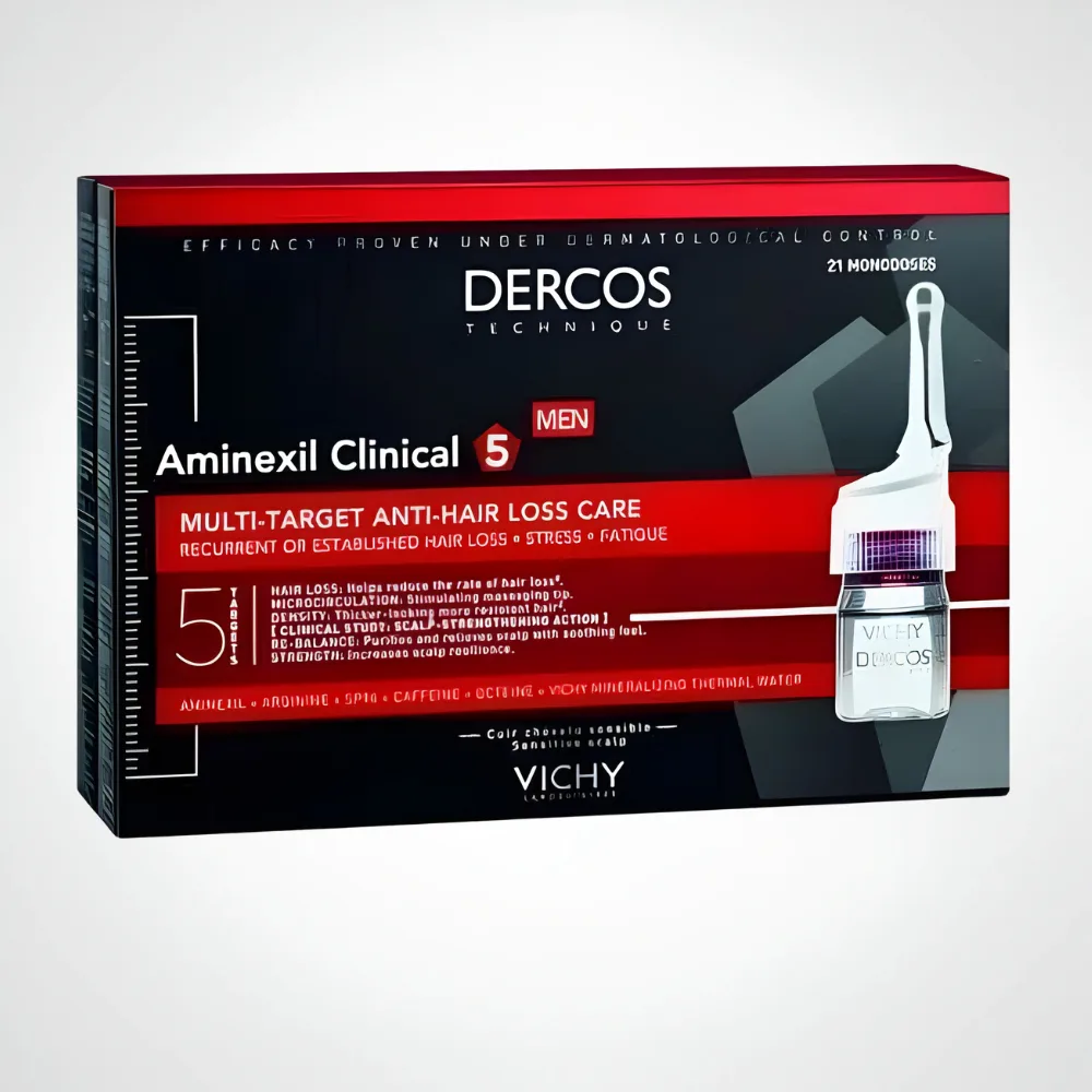 Utiliser le Dercos Aminexil Clinical 5 Homme 1 à 2 fois par an en fonction de l’intensité de la chute.