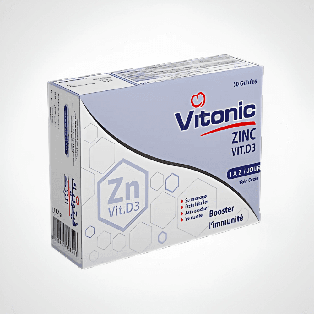 VITONIC ZINC VIT D3 30 gélules Disponible chez MED COAST au meilleur prix en Tunisie.